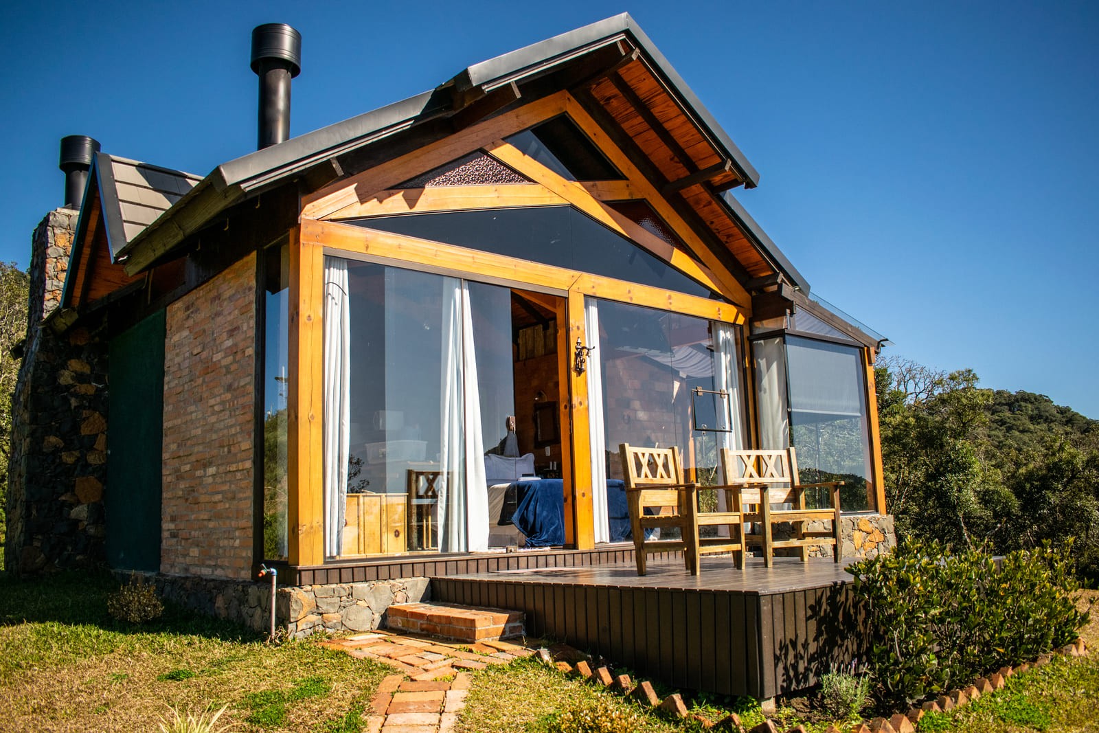O seu momento de aproveitar o contato com a natureza em um cabana moderna que alia a rusticidade da natureza