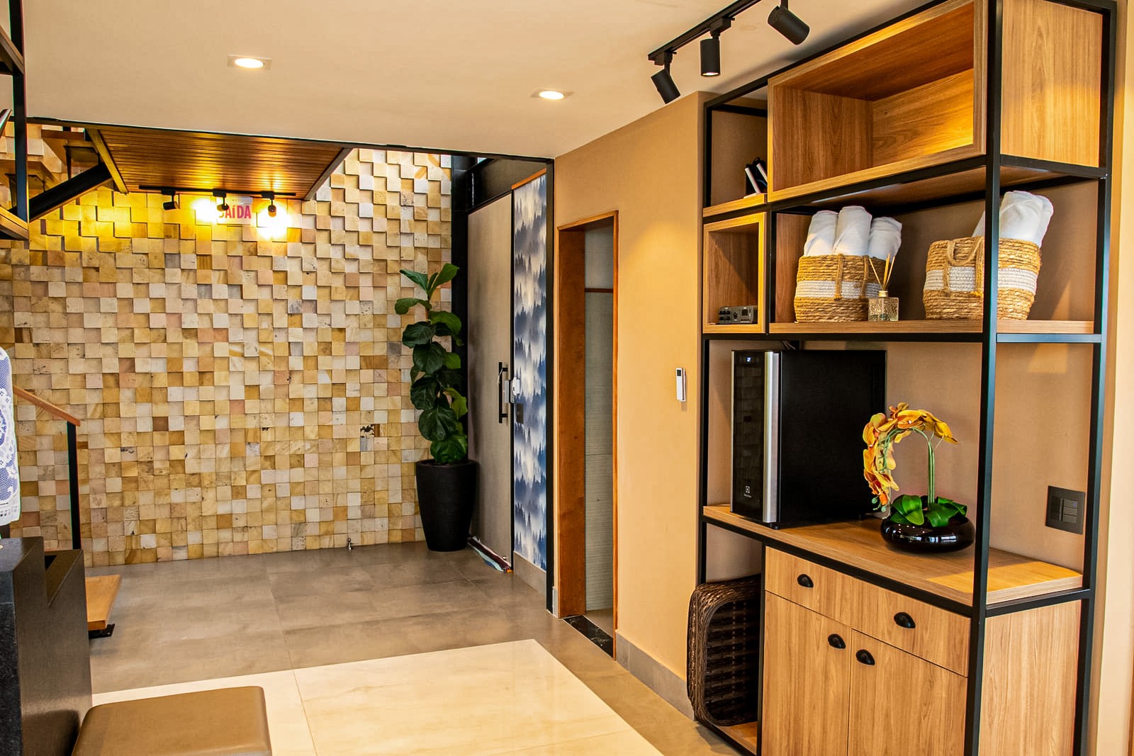 Descubra a serenidade da Cabana Cascata, uma fusão de design moderno e aconchego rústico. Acomoda 2 pessoas, com sala conjugada, sofá, lareira, cama, cozinha e hidromassagem. Paredes de vidro convidam à contemplação. Varanda em deck para fotos incríveis. Cozinha completa com churrasqueira.