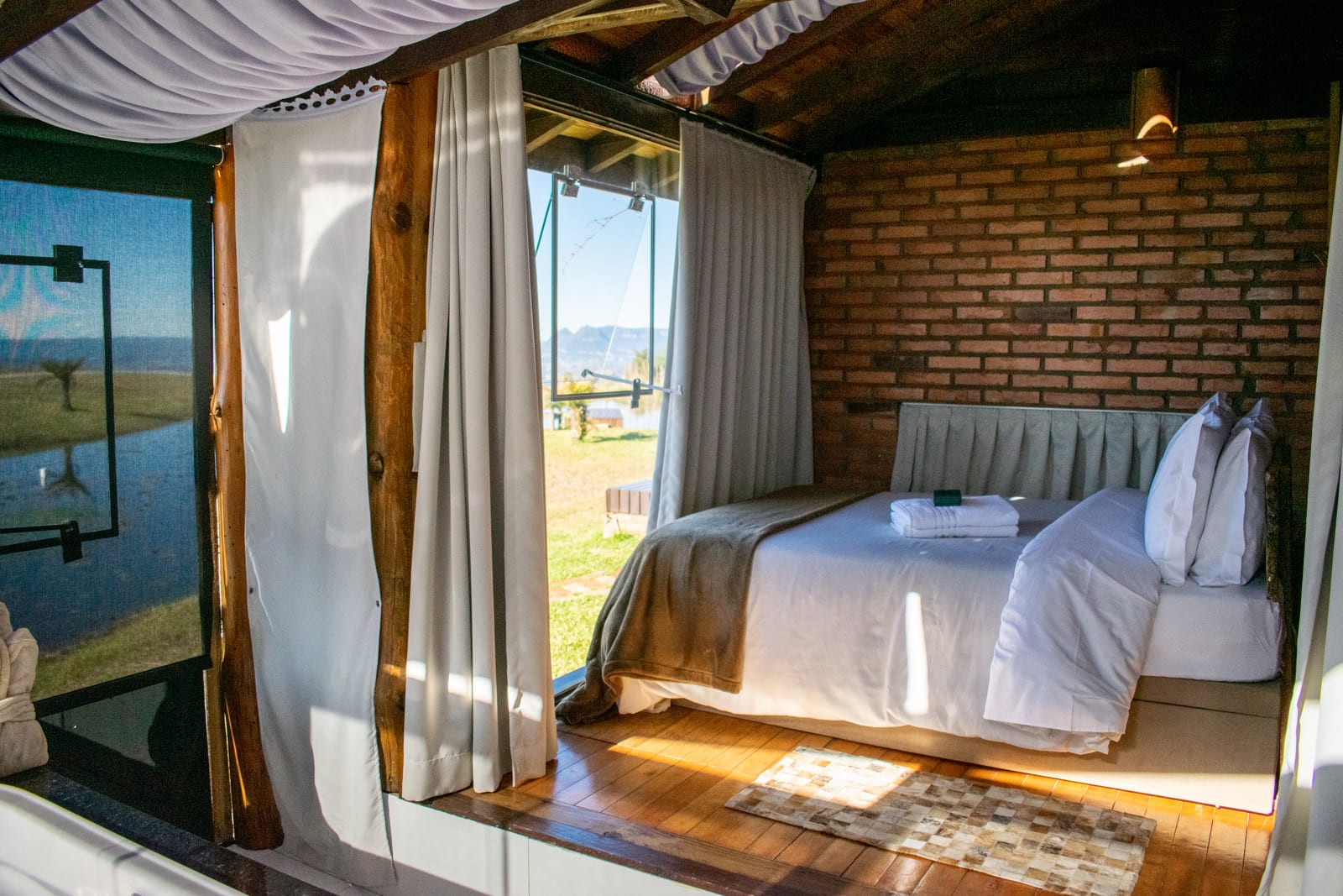 Imagine acordar de manhã em meio a natureza, com o canto dos pássaros. Nossas aconchegantes cabanas proporcionam vistas de tirar o fôlego que se estendem até onde os olhos podem alcançar.